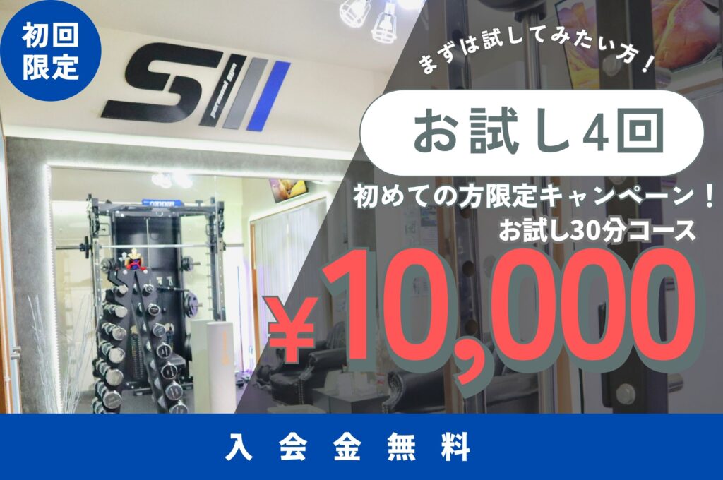 | 体験トレーニング | キャンペーン期間中 0円!! | カウンセリングのみ無料 | 11,000円 |